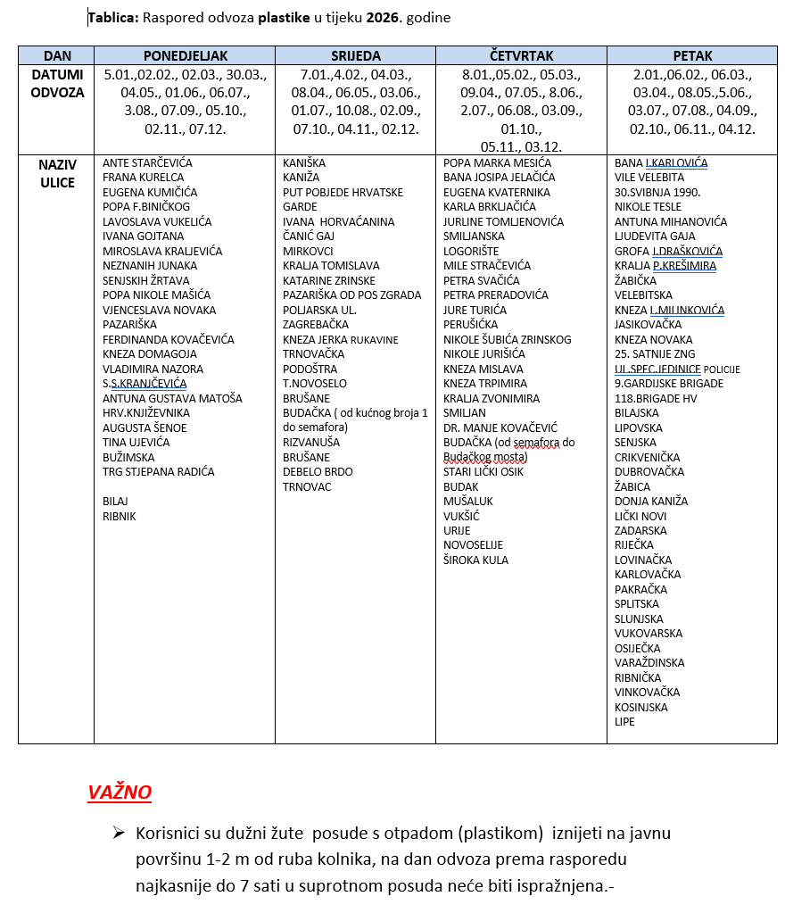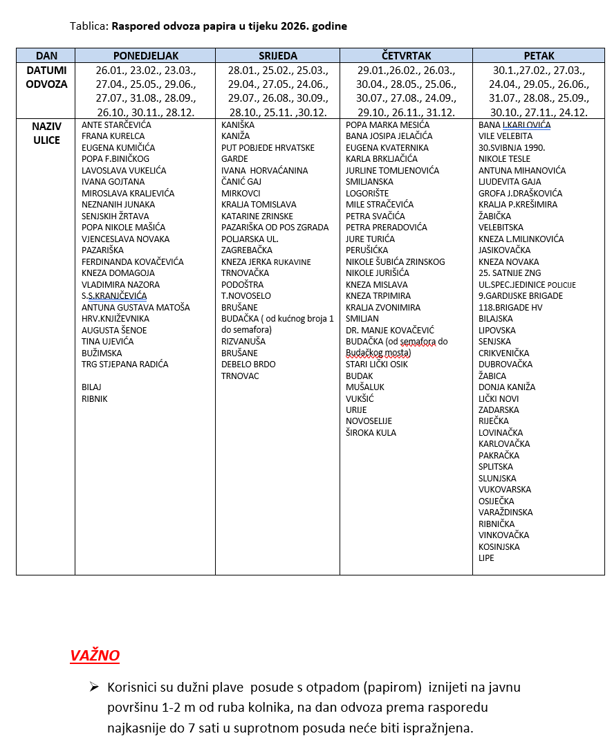 RASPORED ODVOZA